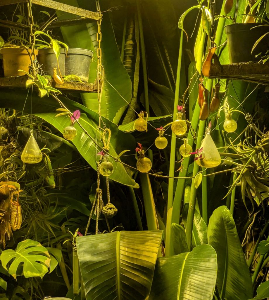 The stones are adorned with gorgeous and intricate porcelain flowers in addition to real plants. These porcelain arrangements were lifelike, detailed and translucent. Many had ferns and moss growing on them. A poignant mix of living and sculptural.