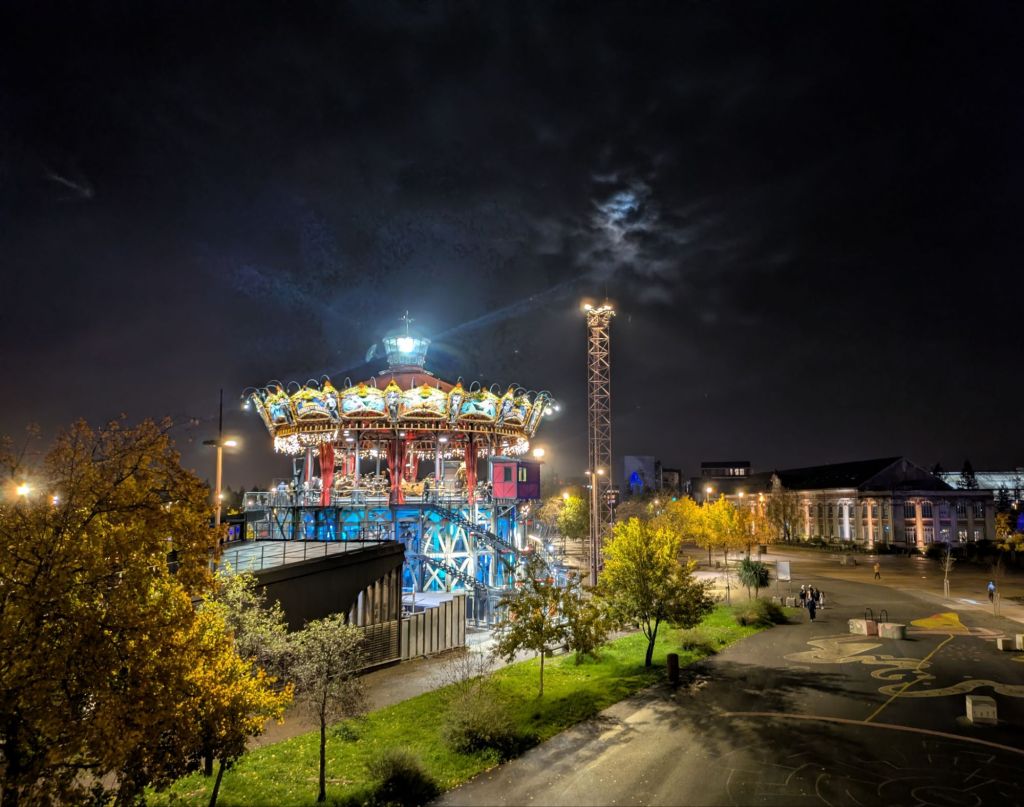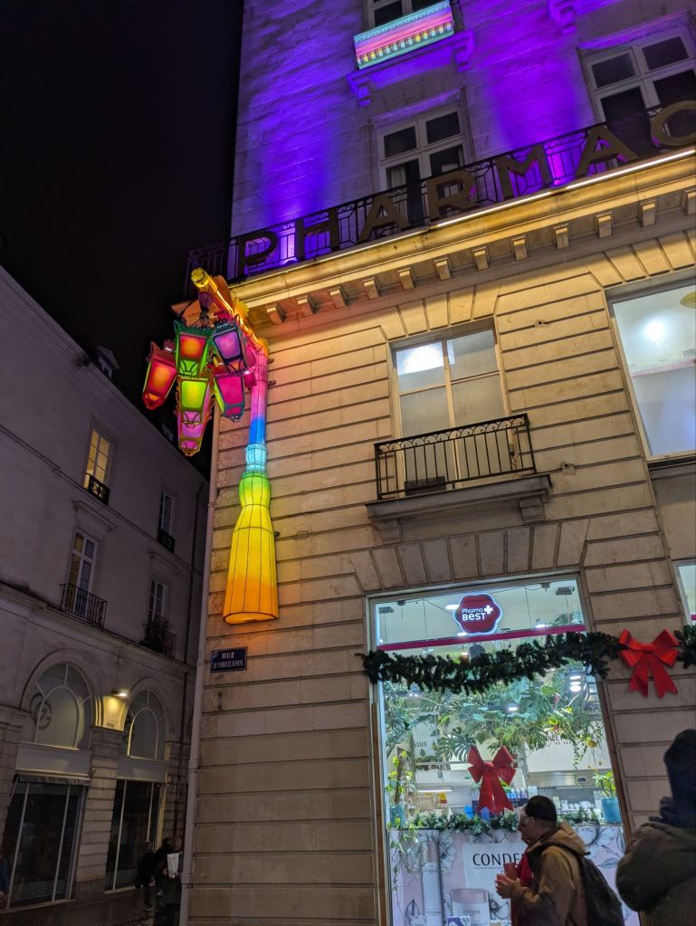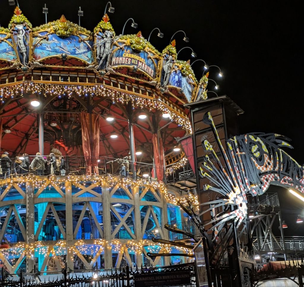 Tonight we travelled to the Ille de Nantes to visit these wonderful enchanting machines. I was awestruck and amazed. The whole town is lit up with festive lights, people are out having holiday fun and the town is lively and bright.