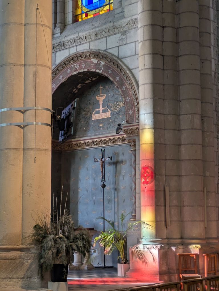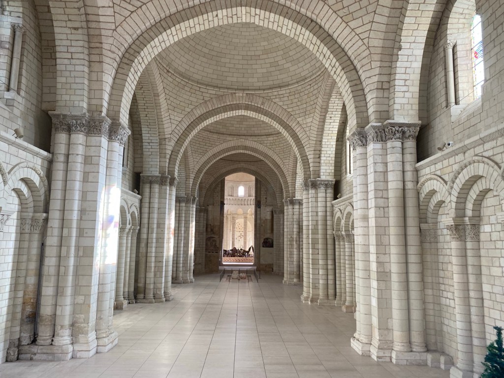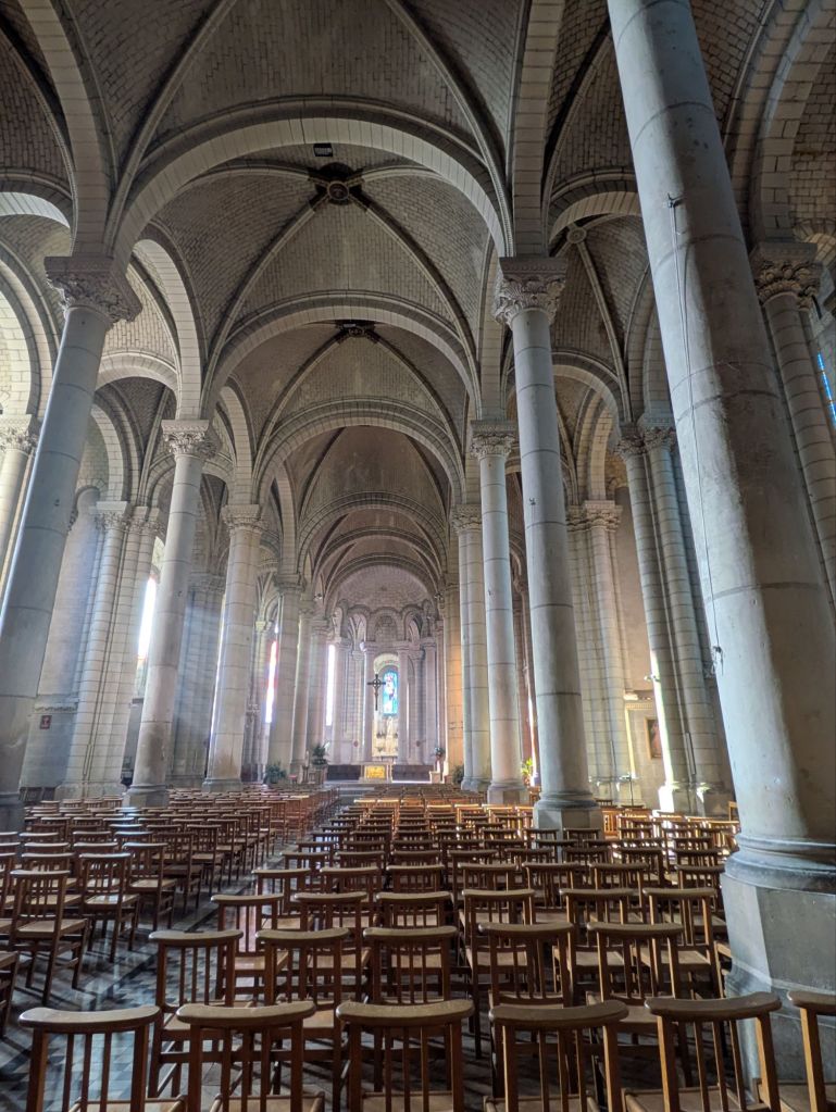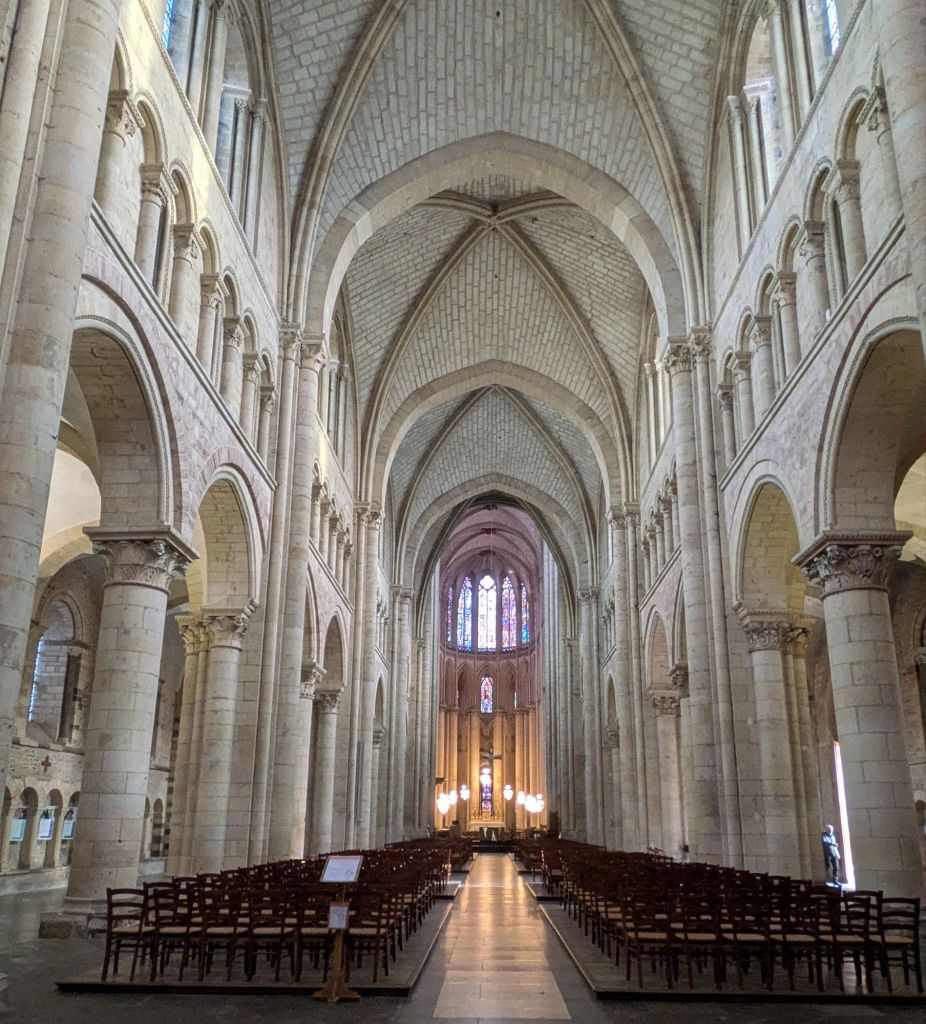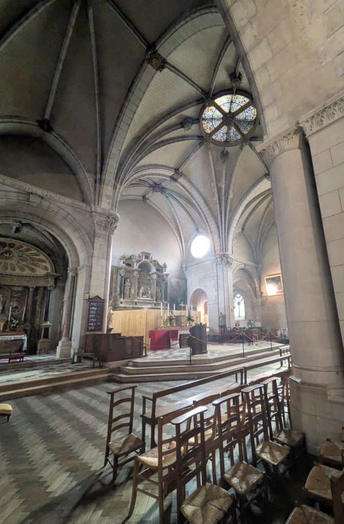 The cathedral is almost entirely stripped of any and all decoration. After the revolution, the nuns were expelled and the place was looted and the Napoleon declared it a prison. During the following 130 years it was a prison and many utilitarian changes were made such as sturdy new floors.