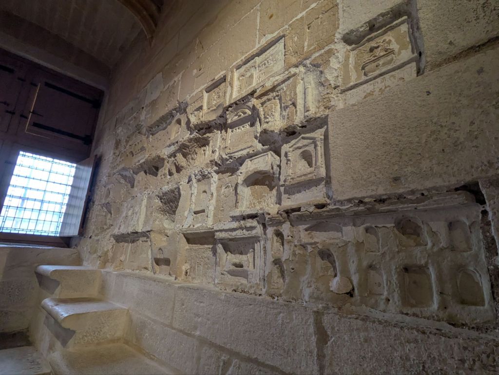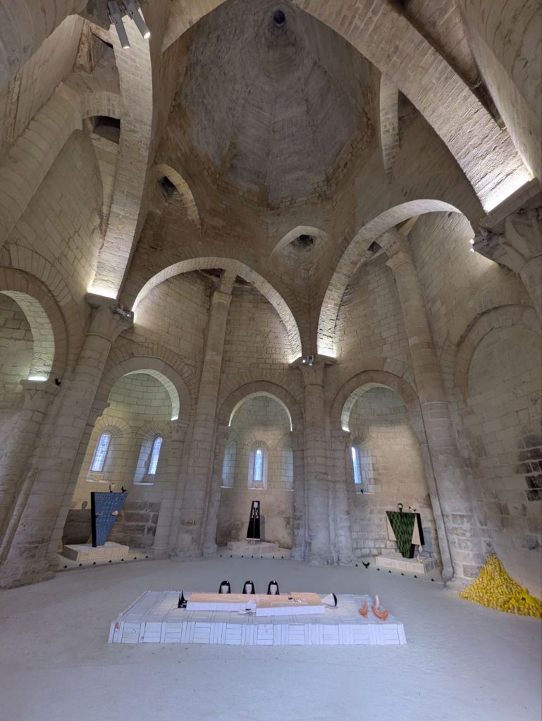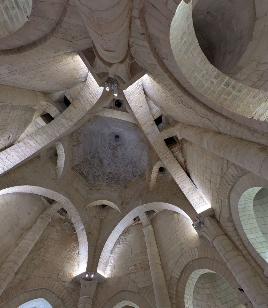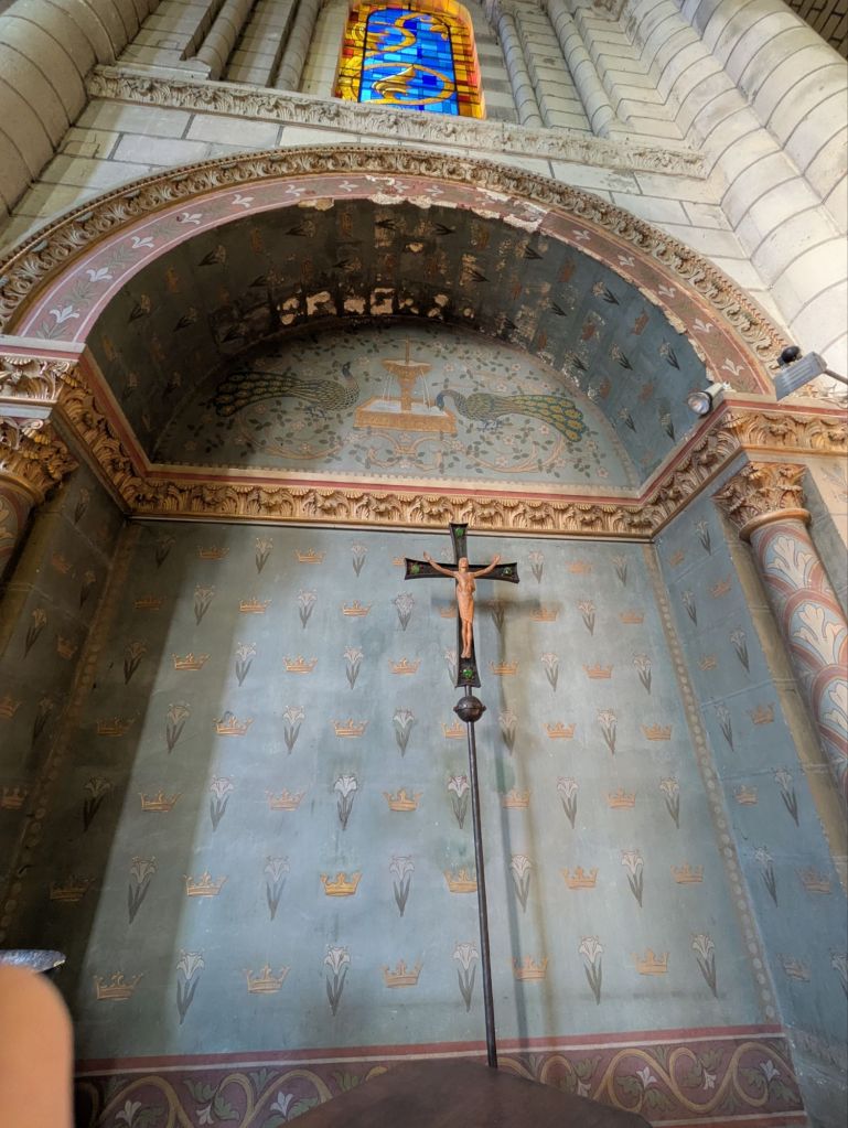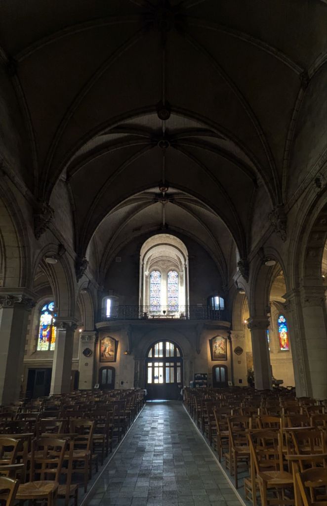 The cathedral is almost entirely stripped of any and all decoration. After the revolution, the nuns were expelled and the place was looted and the Napoleon declared it a prison. During the following 130 years it was a prison and many utilitarian changes were made such as sturdy new floors.