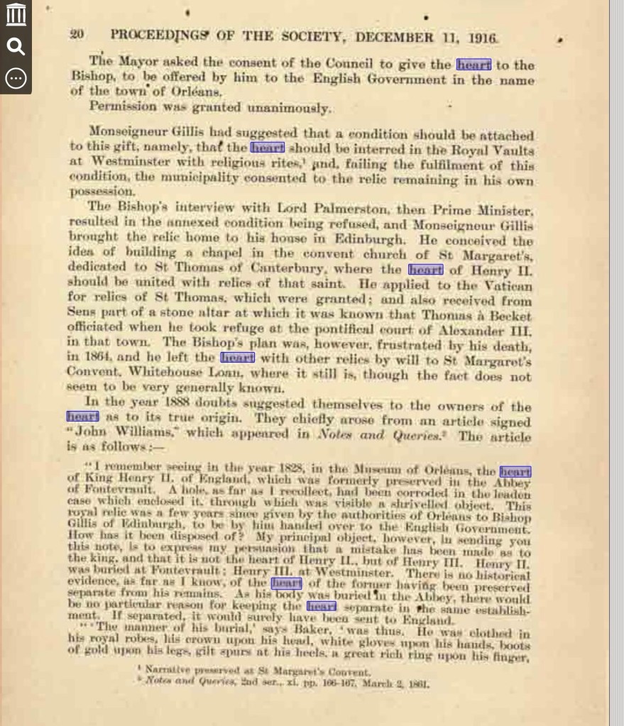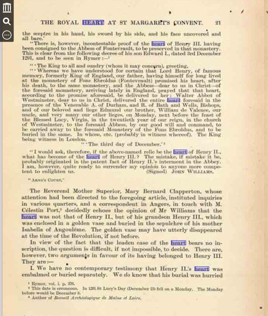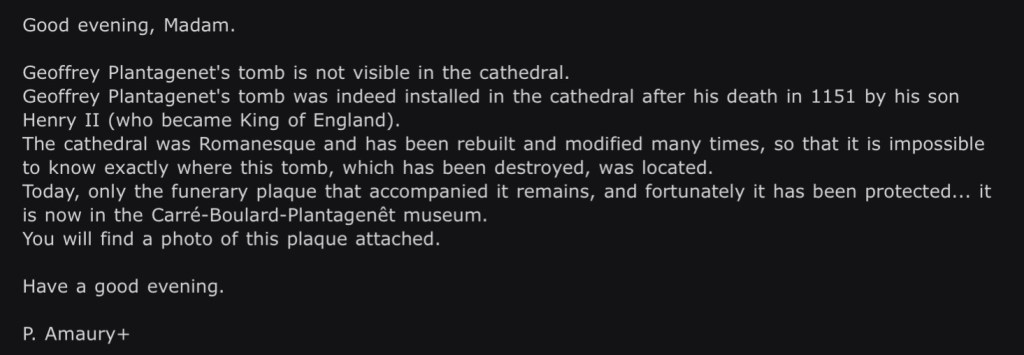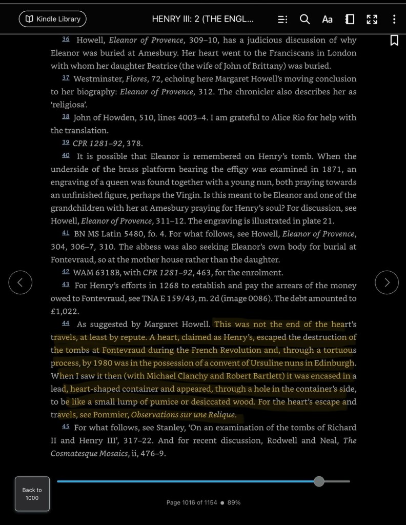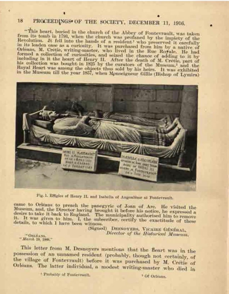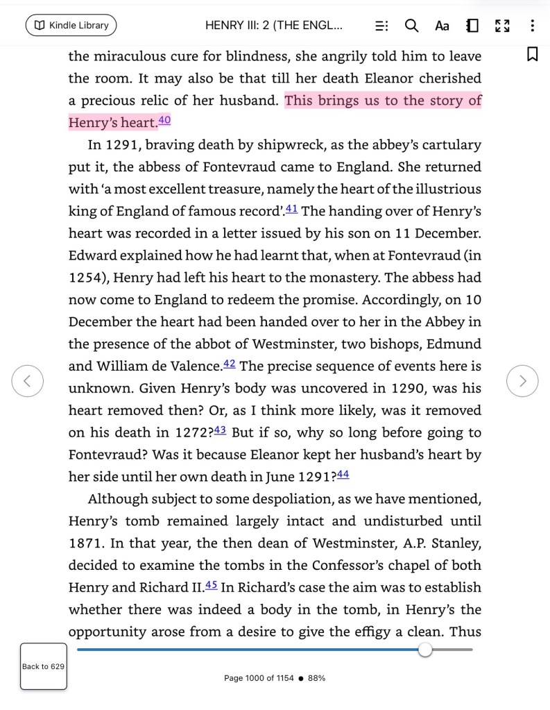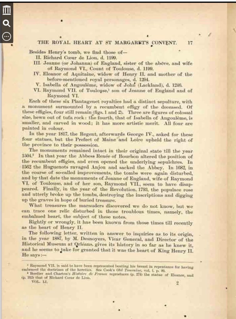 A member of the group found an article in the publication of the Scotland Society of Antiquities, from 1916 that said his heart was in Edinburgh, having been offered up after by Napoleon III. Another suggested I email David Carpenter, a British scholar who has written a several important books on Henry III… so I did. And he answered!