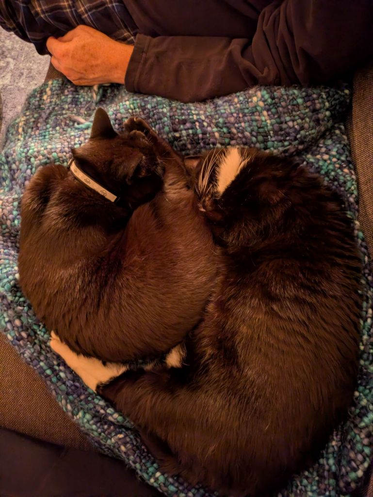So today they are happy. They play constantly, eat normally, drink plenty of water and are super cuddly both with us and each other. They are both super sweet kitties. I’m sure they miss the outdoors, the freedom, the deer, mice and chipmunks. But they seem well adapted and content. We always tell them- we’re together and that’s what counts!