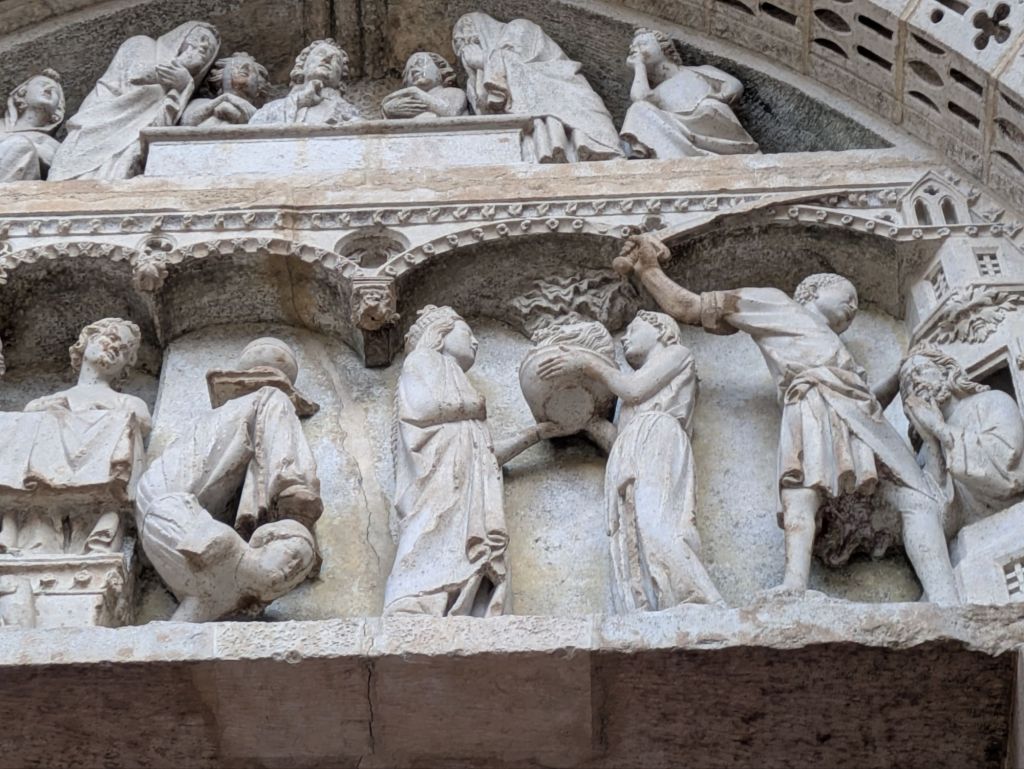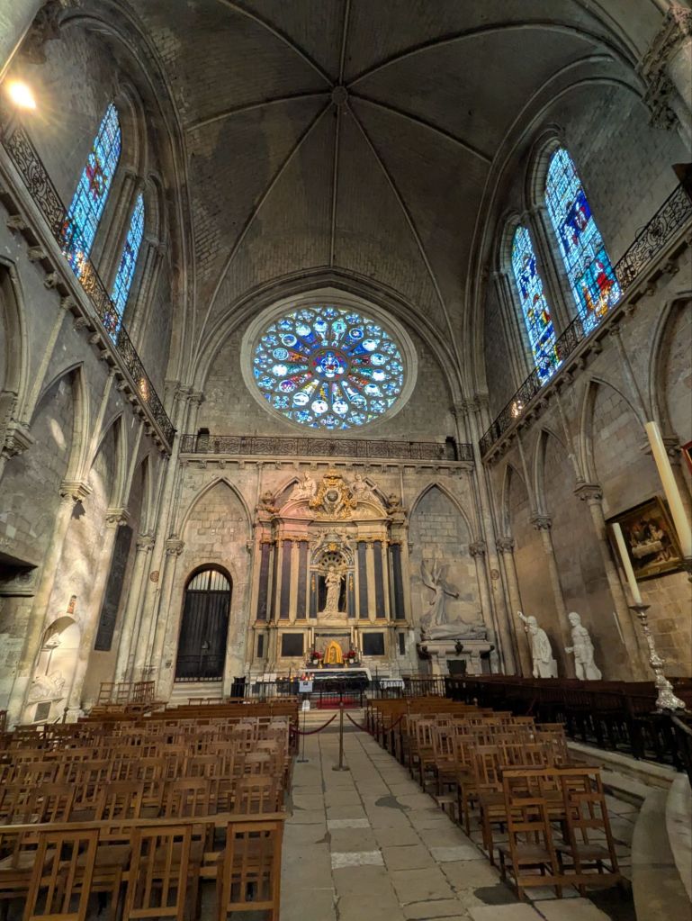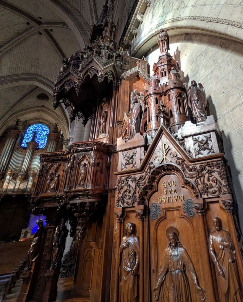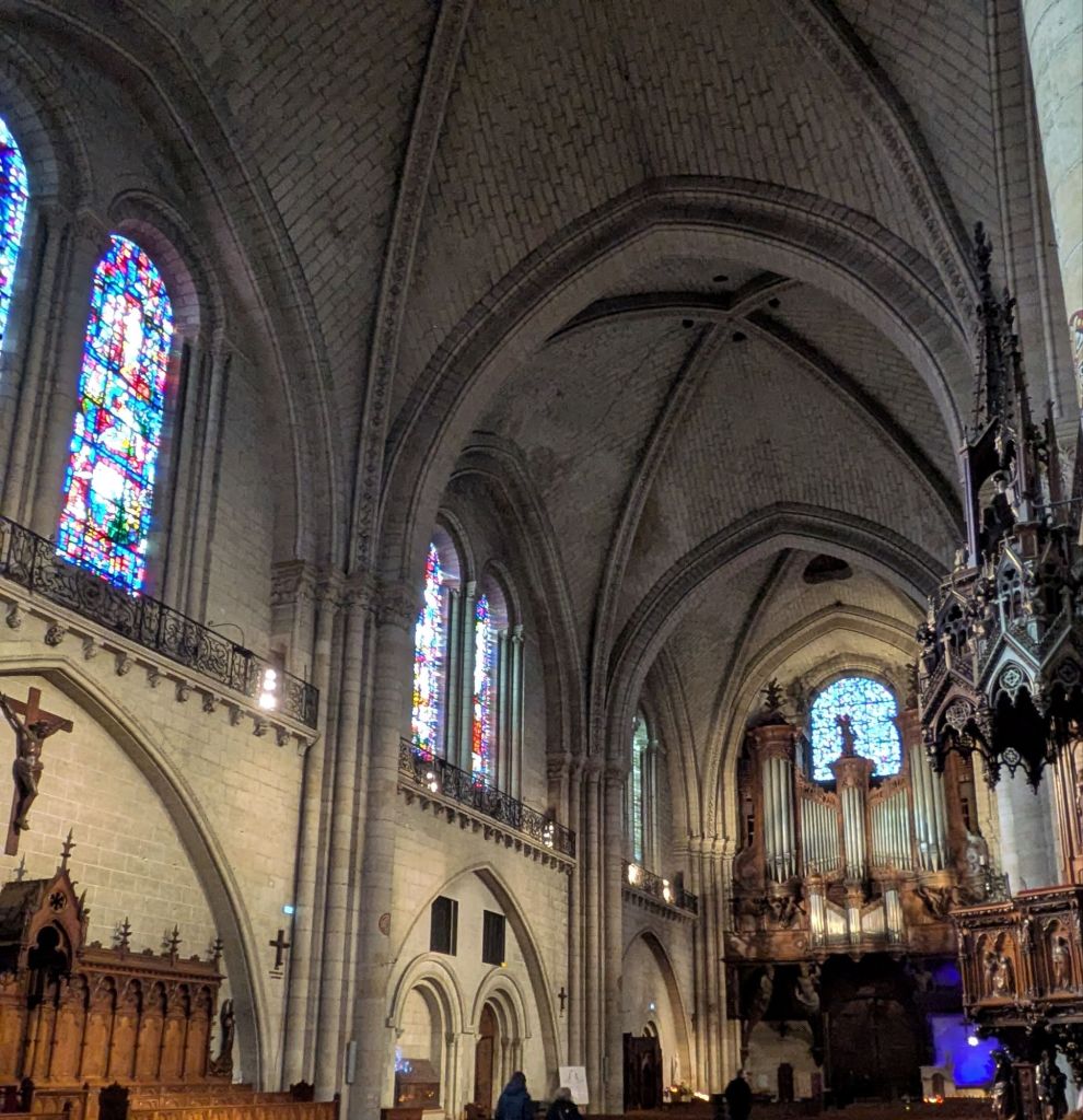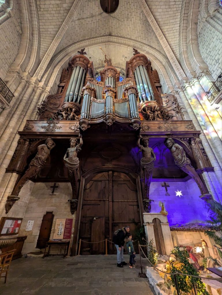 Next we head to the big cathedral, St. Julien. When we got there, we stumbled into a funeral. Luckily, because of that, we got to hear the magnificent organ, and all the lights were on! We stayed a bit but then left to walk around town and come back when we wouldn’t be disturbing a sacred moment.