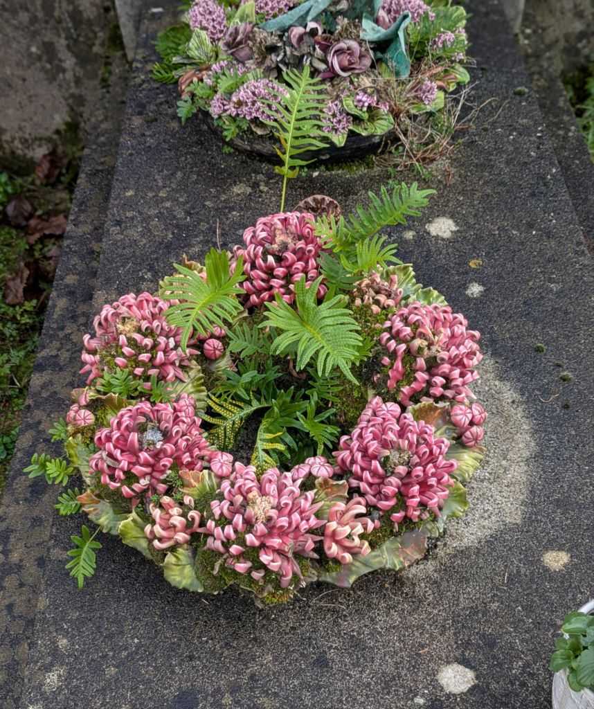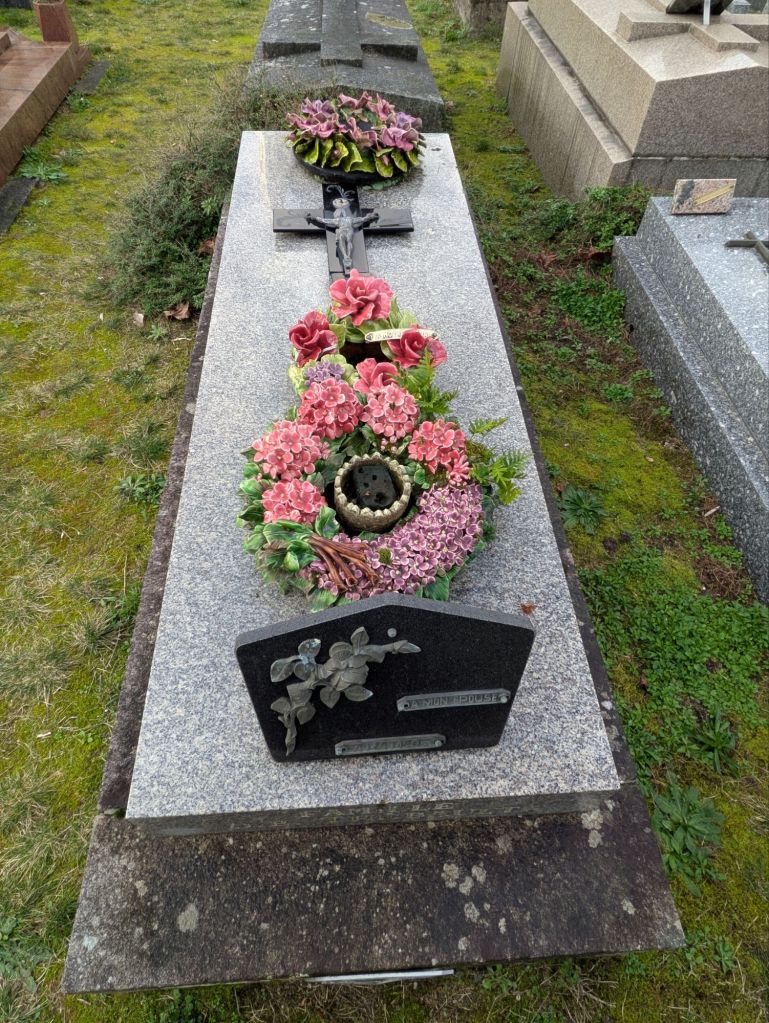 These graves contain multiple family members. They must lift the stones and inter more bodies on top. I saw up to seven plaques on one grave.