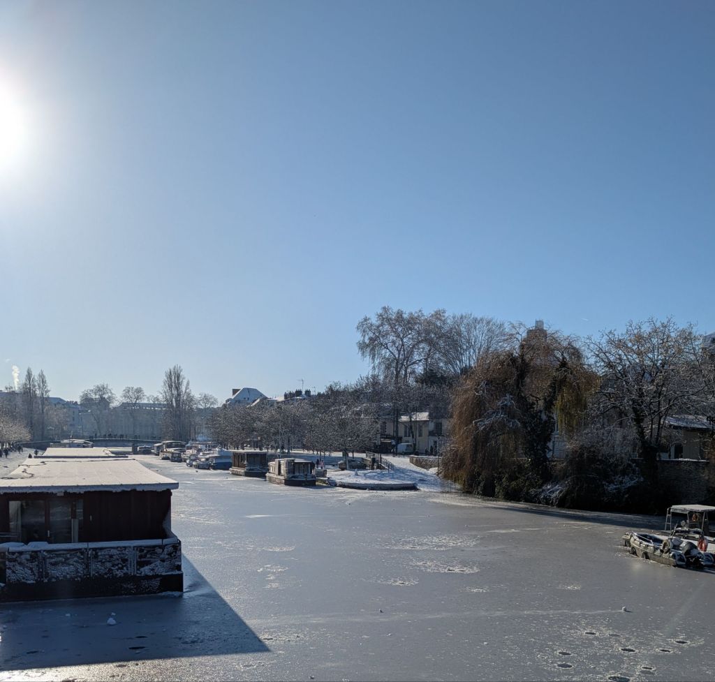 Foggy winter mornings don’t stop people from getting out and about. The scene from our window. Today we are expecting 2 out of 7 boxes to arrive at our friends apartment. This delivery has turned out to be a major pain, but she graciously lets us take showers and hang out until they arrive. Then we will tote them to her storage space until we find our own apartment. At the Airbnb we are staying in, we have no storage options. Good news is that I got my french phone number and we activated our visas, thanks to our host who graciously allowed us to use this address as a permanent one. Now I think we have what we need to apply for a bank account. Once all that is done we can fill out the government papers, the “dossier” in order to rent an apartment. That will be our next big step. On the water heater front, repair persons will be here again today. Fingers crossed that we will have heat and hot water soon! Other than that we’ve been walking a lot and getting little things we need, like finding mirin, rice wine vinegar and a dish drying rack! Essentials for life, IMO. 💙 🤍 ♥️