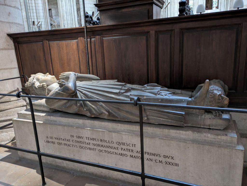 A typical street in RouenI love the acrobatThe tomb of Rollo, or Rollon, the Viking who converted to Christianity and was rewarded with the Duchy of Normandy. His great, great, great grandson was William the Conqueror. One of the oldest astronomical clocks still working in France