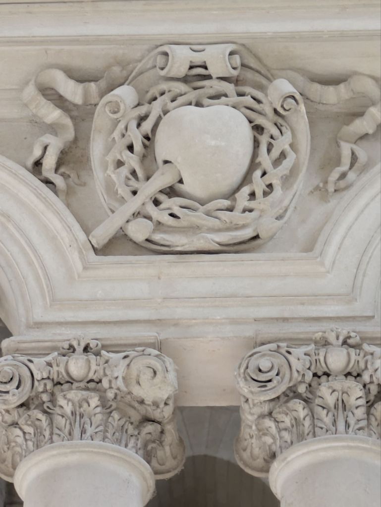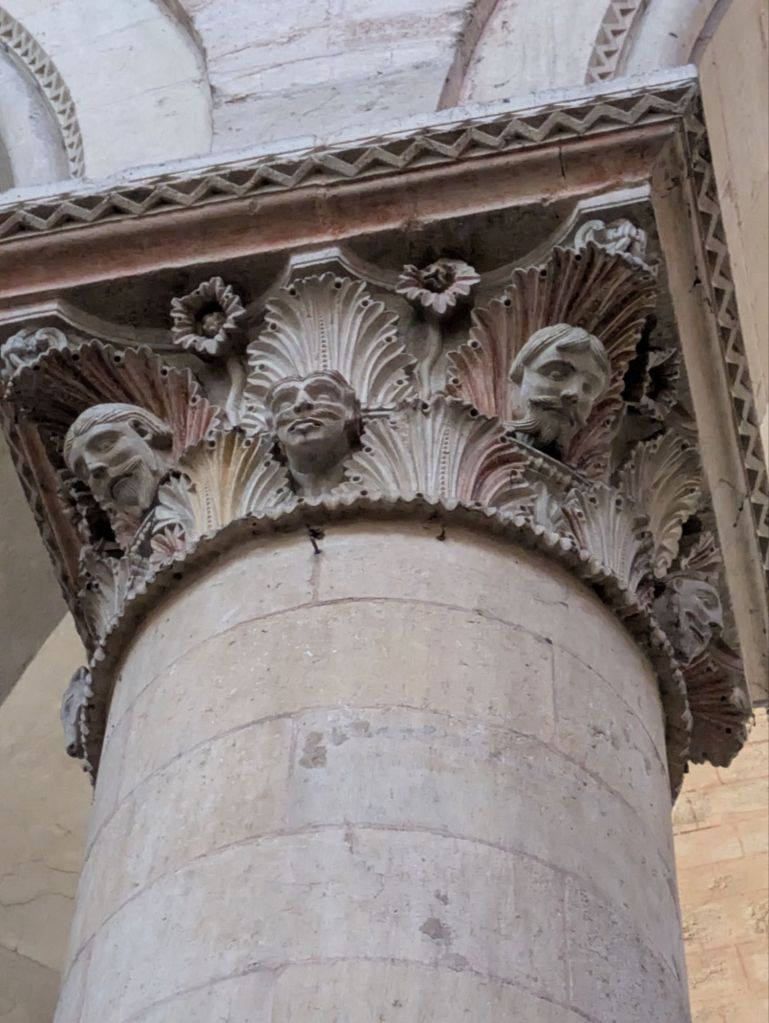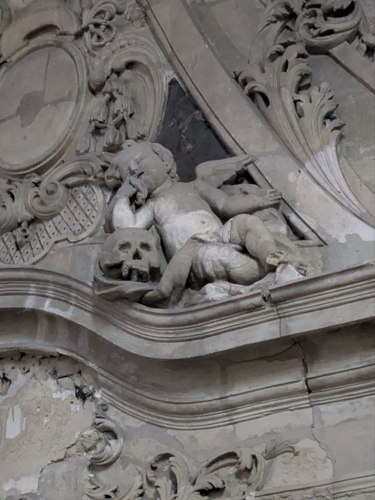 The cathedral we visited is under major restoration so much of it was off limits, but tucked away in the back is an older nave. You know how I love Memento Mori? I managed to spot a nod to the reminders of our common destiny, the hourglass and the skull.