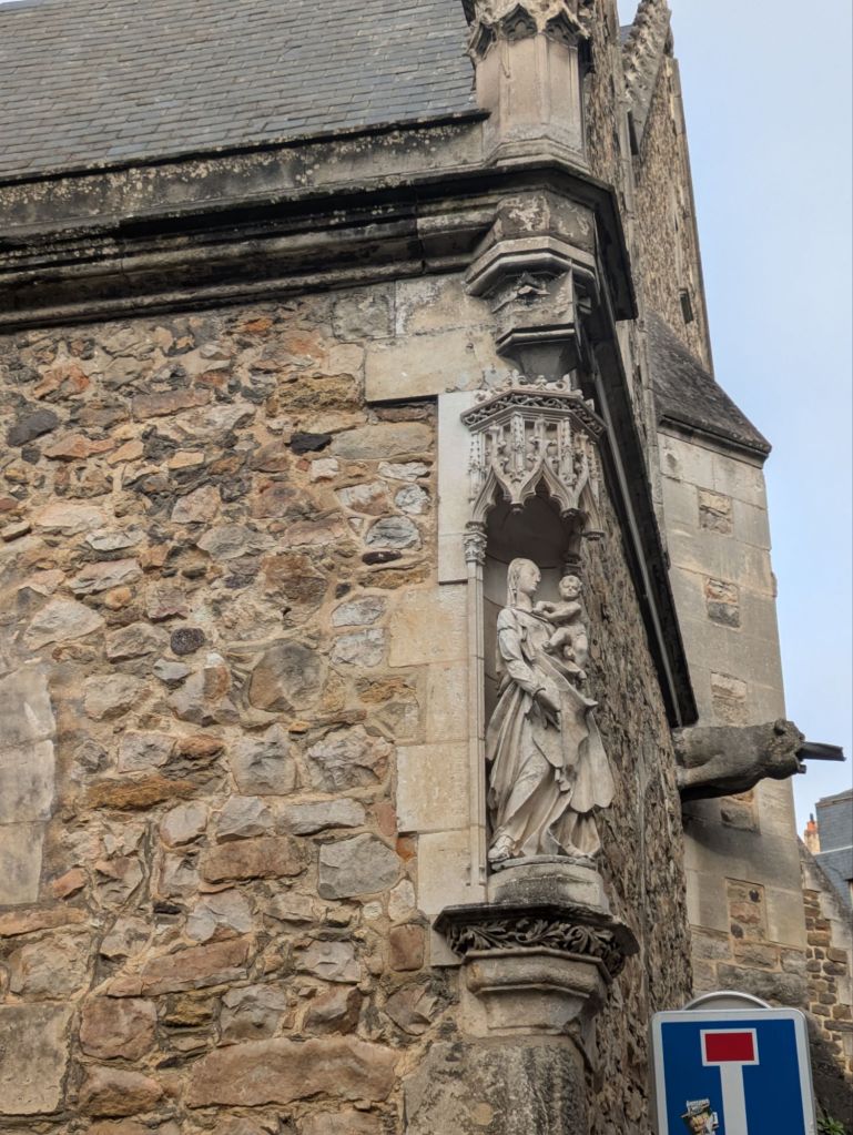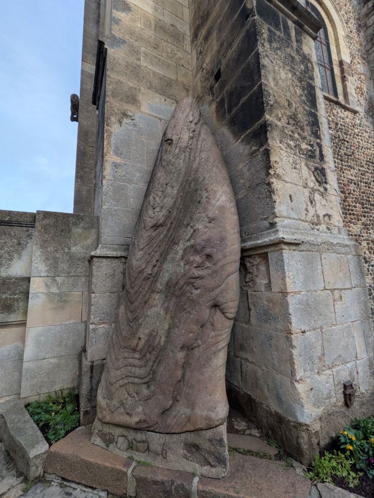 Outside the church is a famous Menhir of Le Mans. A menhir is a single standing stone. It was an important pagan symbol that was saved by St. Julian, who brought Christianity to this town in the 4th century. It was placed next to the cathedral during construction and is said to be the only remained stone of where others once stood.