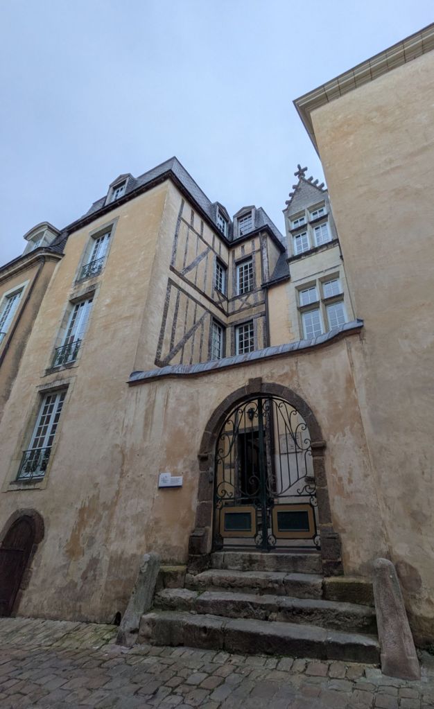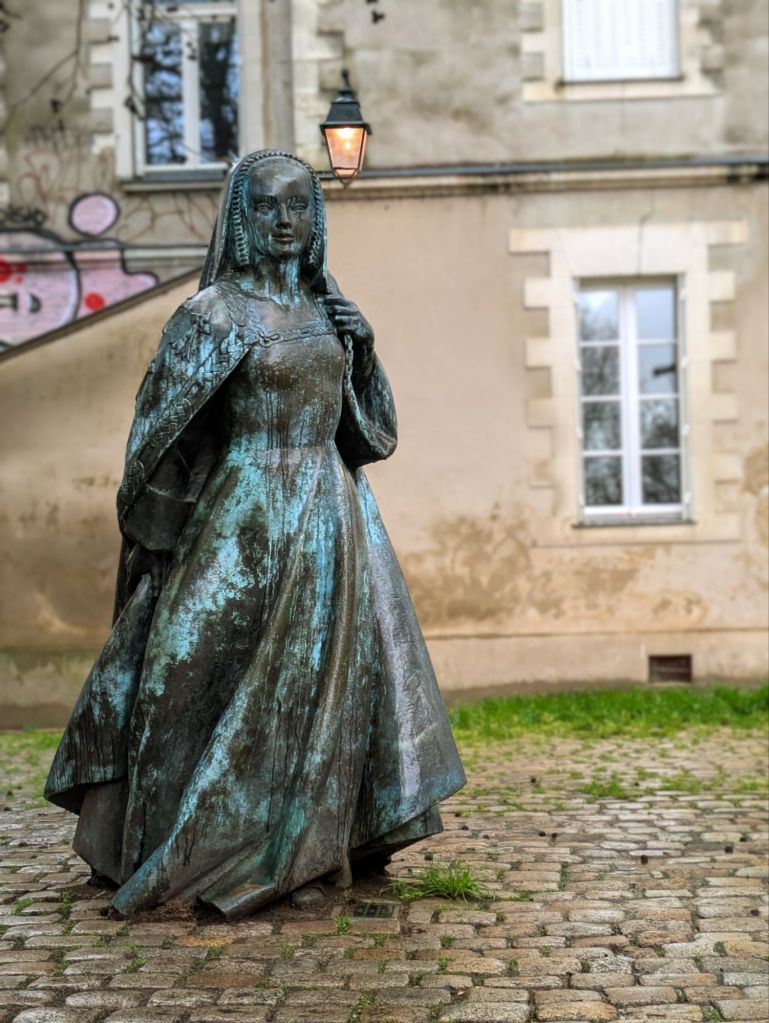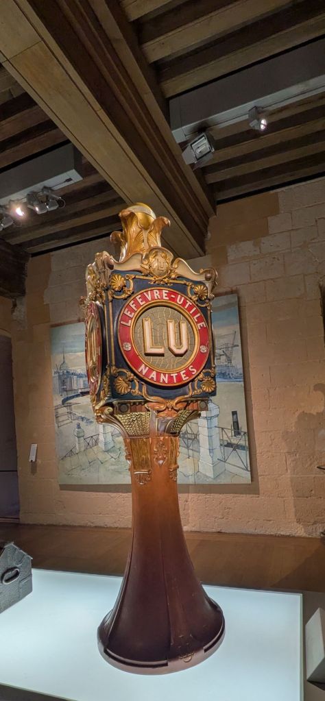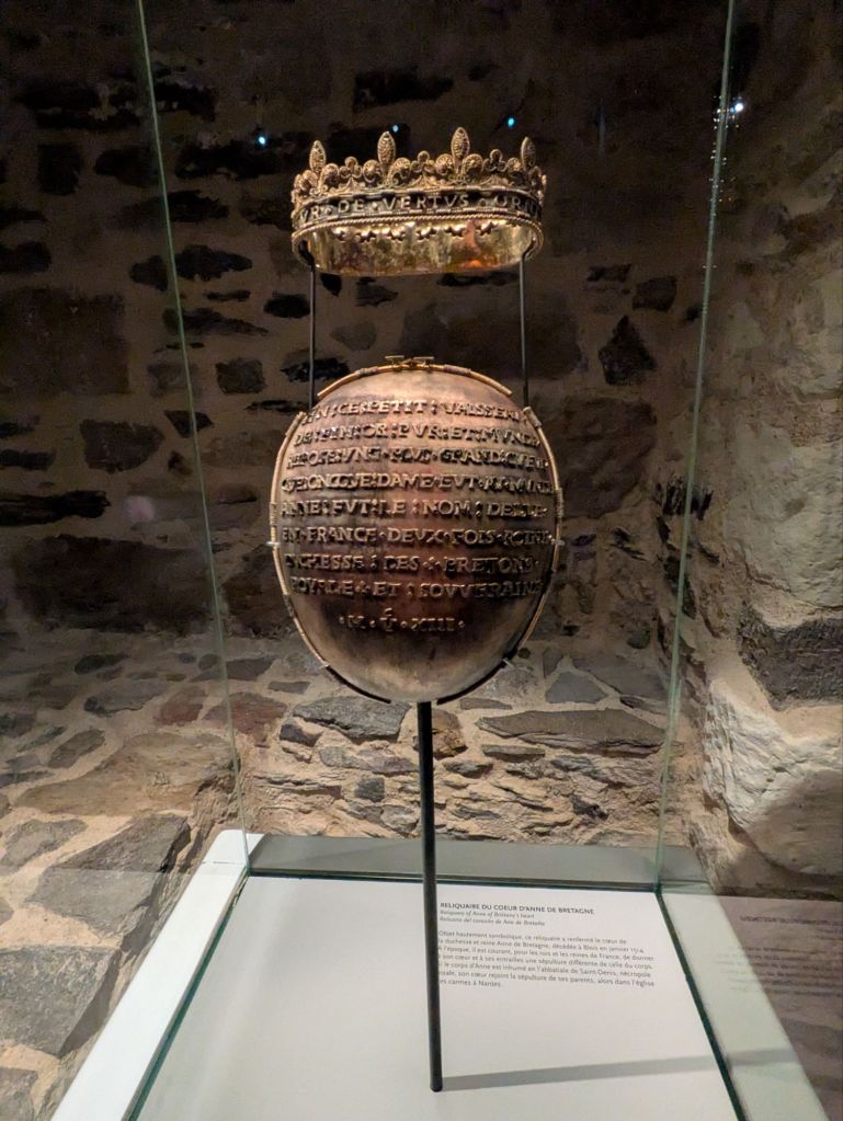 We finally made it to the city history museum, located in the towns castle. I love the architecture of this museum. While the structure of the massive building is sound, the inside floors are long gone. Instead of restoring them, a new structure was built within the walls. It combines a minimalist palate to appreciate the stonework and details of the exhibition. It all starts with Anne of Brittany, Nantes’ kind of patron saint.