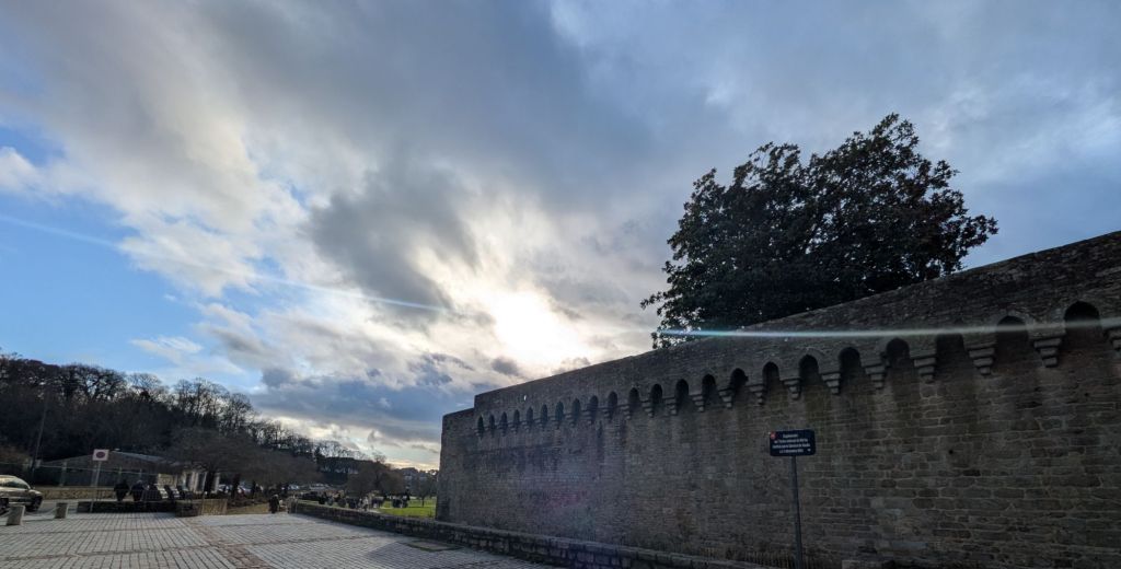 And now, finally, we walked all around the outside. The old Roman wall passes right through the body of the cathedral, or under it, I should say. Again, I find the side-by-side builds between different centuries just so interesting and beautiful.